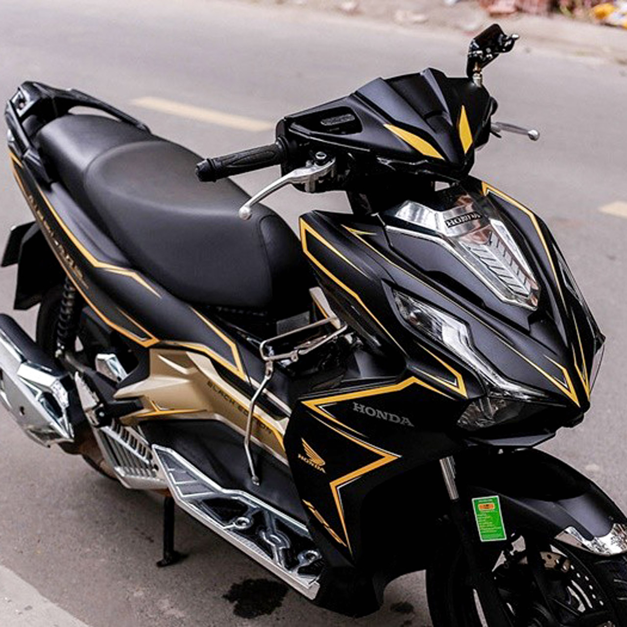 Hơn nữa, màu đen nhám còn phù hợp với nhiều phong cách và dễ dàng phối hợp với các tem dán khác, tạo nên một tổng nổi bật hơn. Đối với những ai yêu thích sự tối giản nhưng vẫn muốn thể hiện cá tính riêng, dán xe Air Blade đen nhám thuần là lựa chọn hoàn hảo. Đây không chỉ là một giải pháp thẩm mỹ mà còn là cách bảo vệ xe hiệu quả, giúp xe luôn nổi bật và thu hút ánh nhìn.