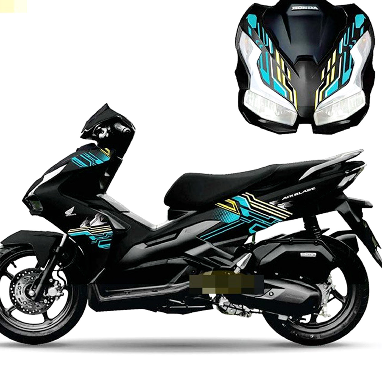 Sự kết hợp giữa nền đen nhám mạnh mẽ và các đường chỉ màu sắc nổi bật tạo ra một diện mạo mới mẻ và thu hút cho chiếc Air Blade. Lớp decal đen nhám giữ nguyên vẻ mạnh mẽ và lịch lãm, trong khi các đường chỉ màu sắc như đỏ hay vàng được phối hợp tinh tế, tạo nên sự tương phản bắt mắt.