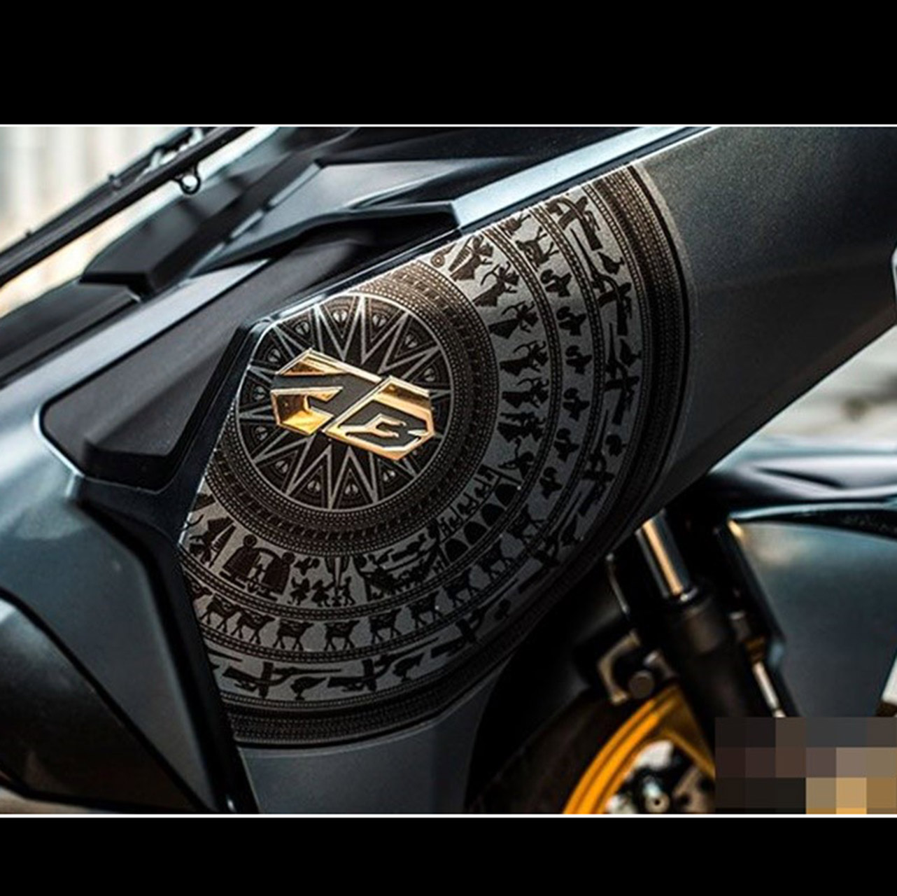 Nếu bạn yêu thích sự tinh tế và không muốn quá nổi bật, mẫu dán trống đồng với họa tiết nhỏ và chi tiết tập trung ở một vài vị trí như yếm xe, đuôi xe sẽ là lựa chọn hoàn hảo.