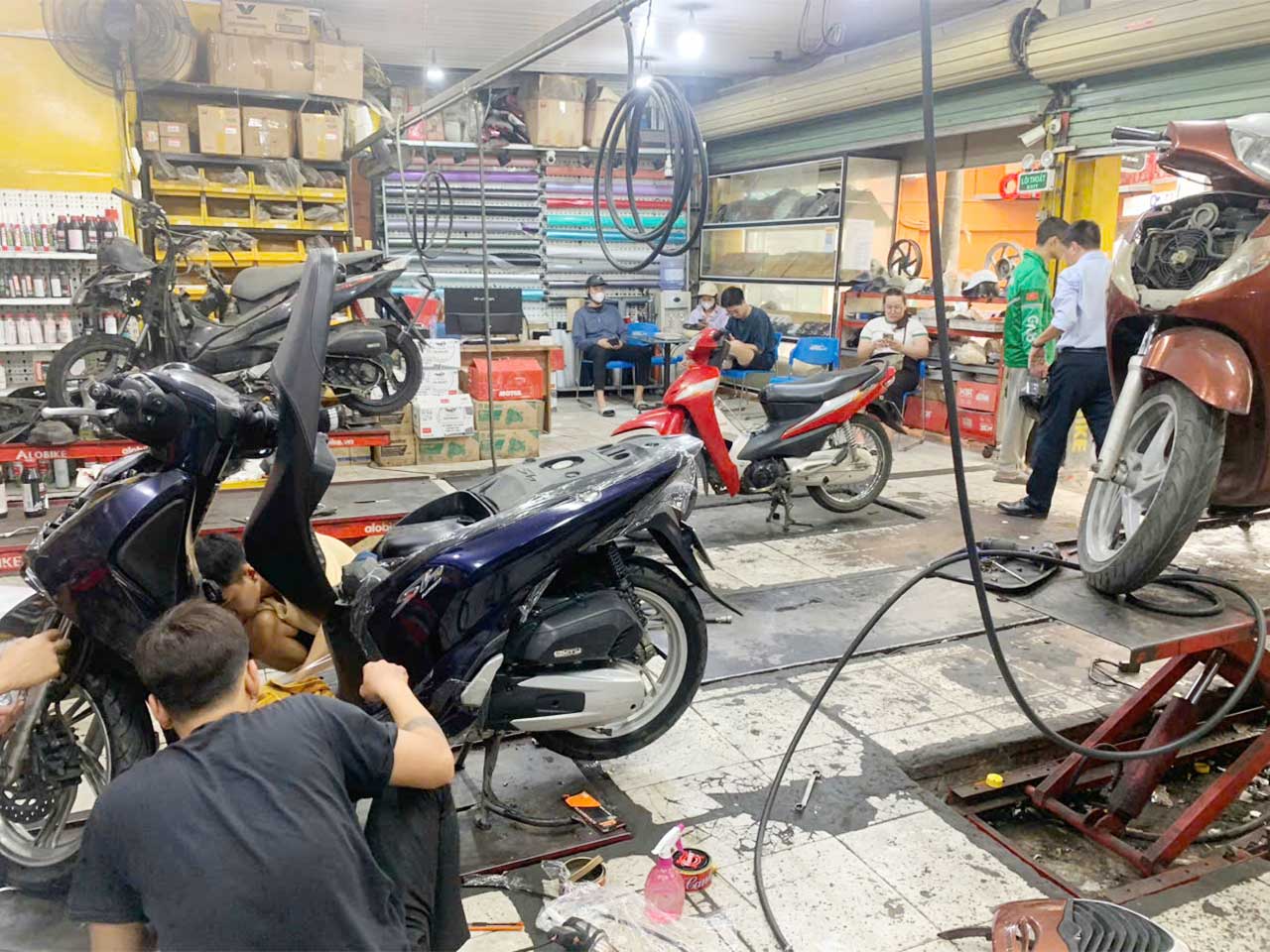 Cửa hàng có khoảng 8 kỹ thuật viên và 9 bàn nâng sửa xe, cho phép xử lý nhiều xe cùng lúc. Điều này giúp giảm đáng kể thời gian chờ, đặc biệt vào những khung giờ cao điểm.